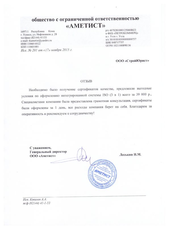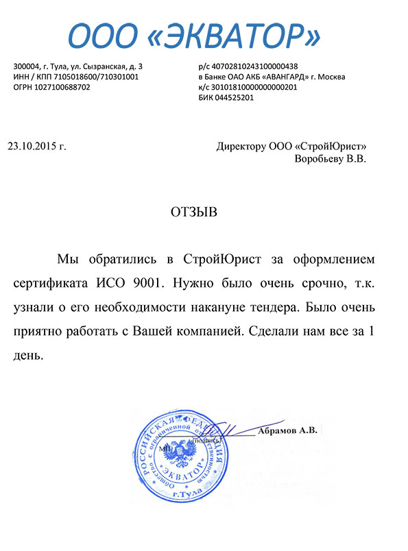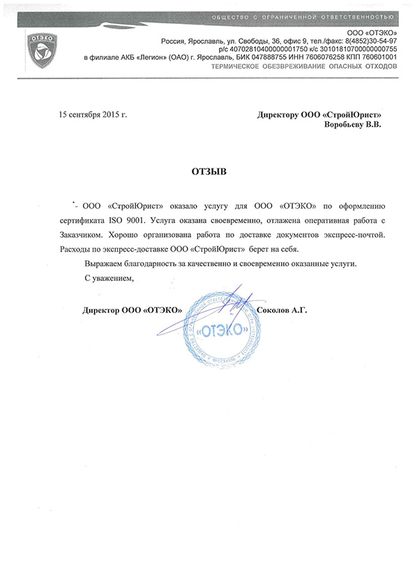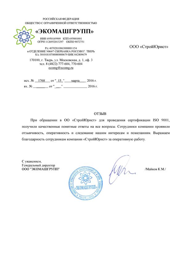 Отзывы клиентов "СтройЮрист" по ISO в Йошкар-Оле