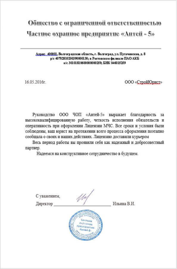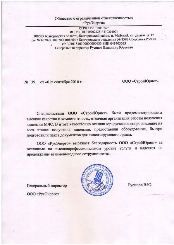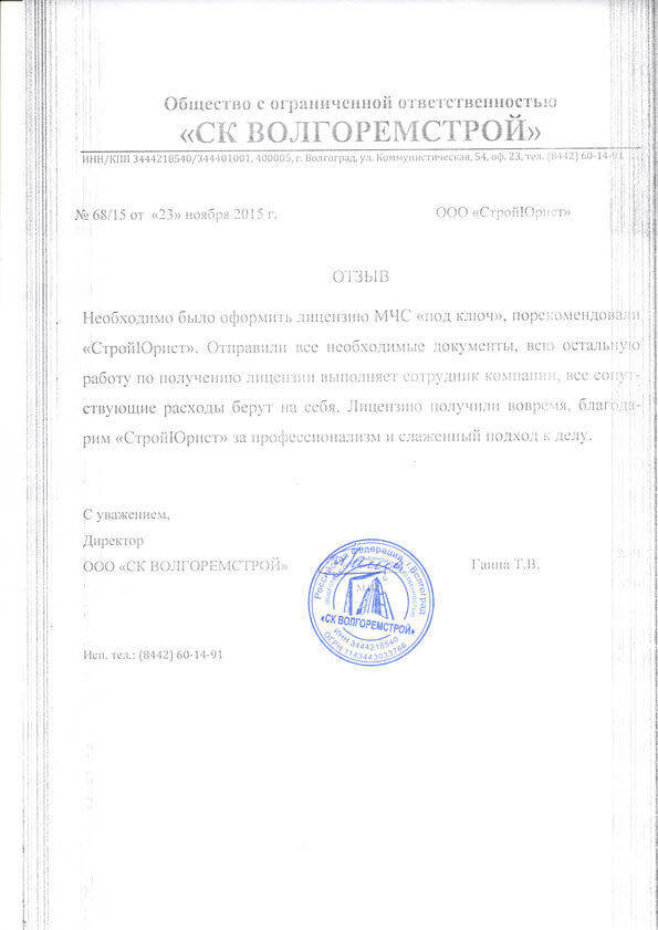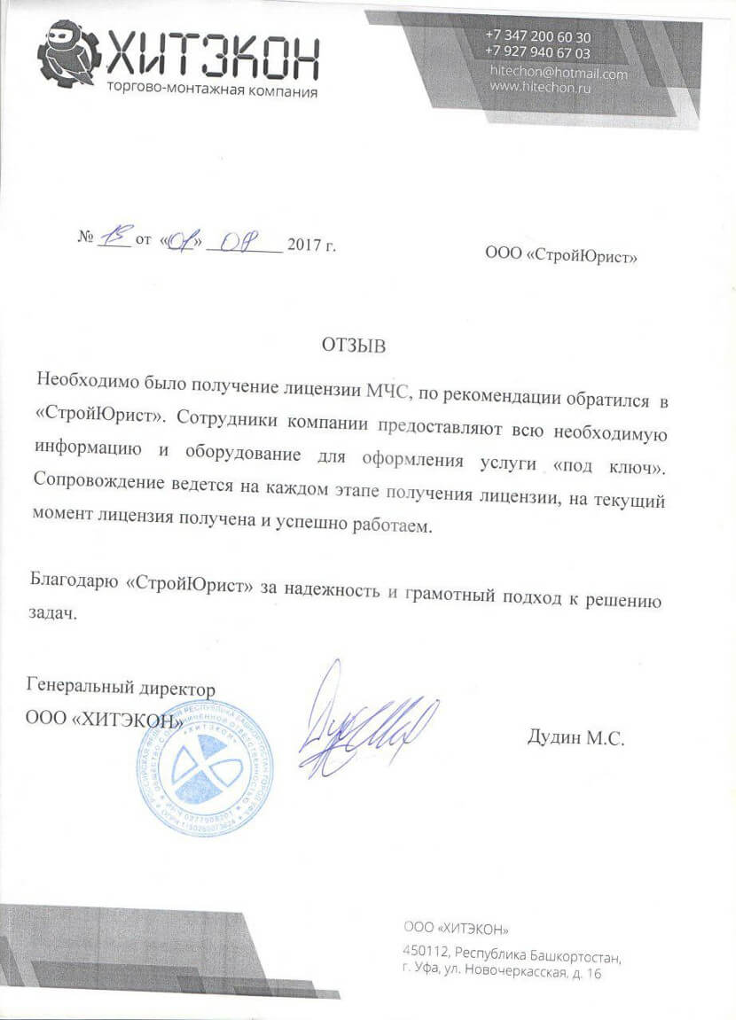 Отзывы клиентов "СтройЮрист" по лицензированию МЧС в Йошкар-Оле