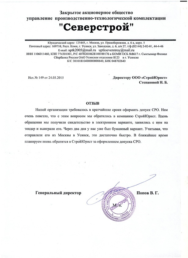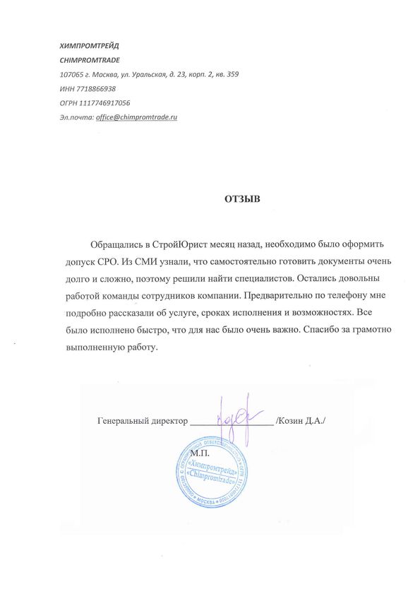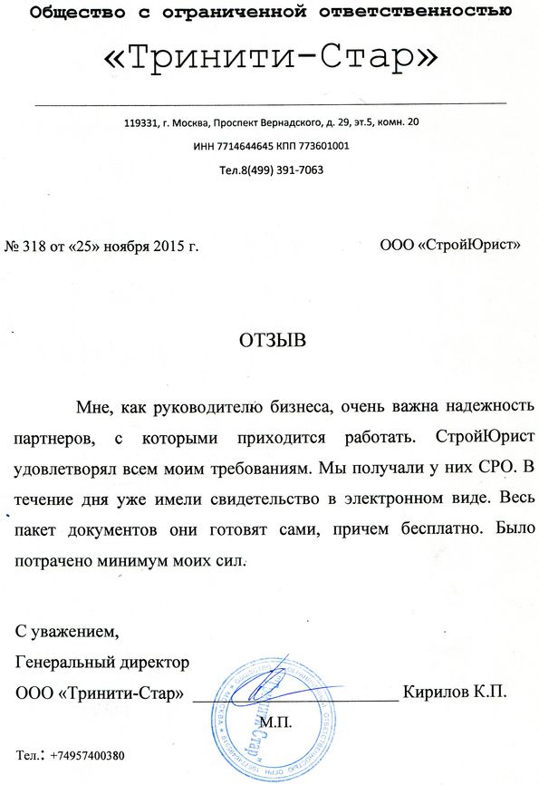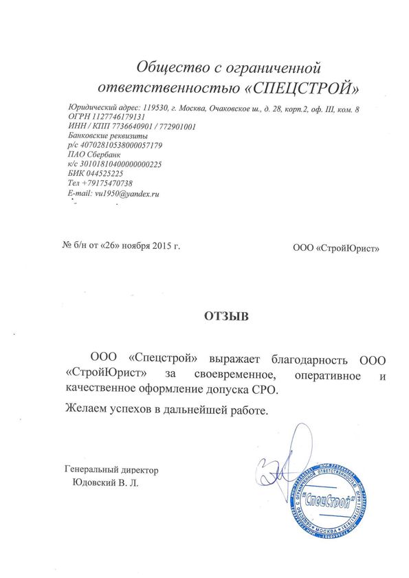 Отзывы клиентов "СтройЮрист" по вступлению в СРО в Йошкар-Оле