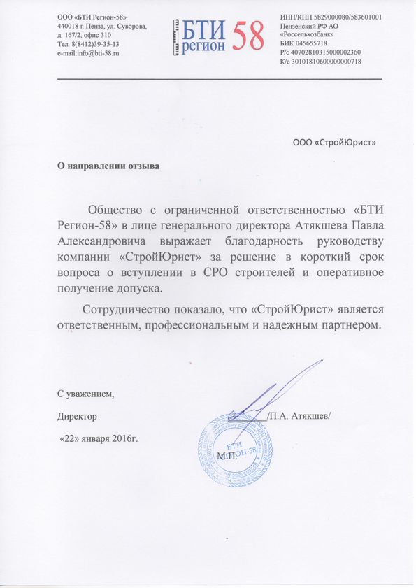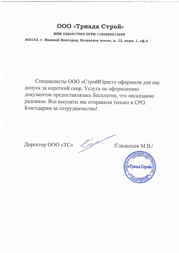 Отзывы клиентов "СтройЮрист" по вступлению в СРО в Йошкар-Оле