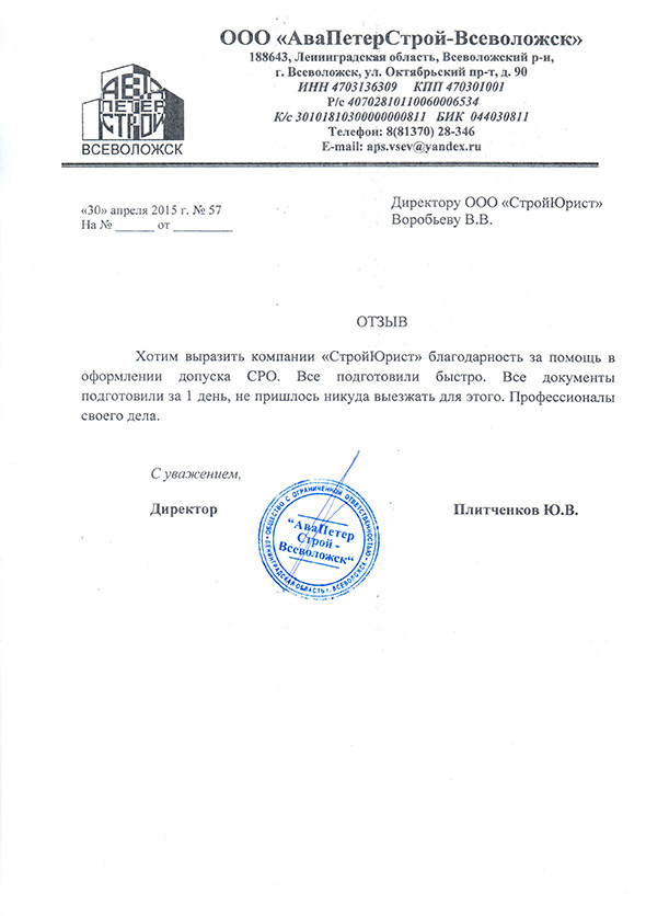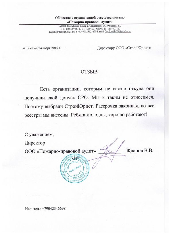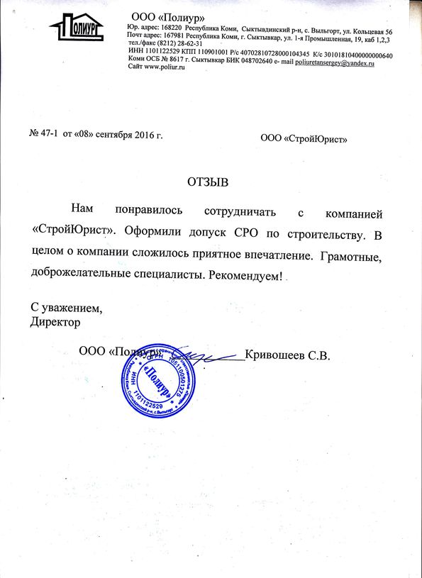 Отзывы клиентов "СтройЮрист" по вступлению в СРО в Йошкар-Оле