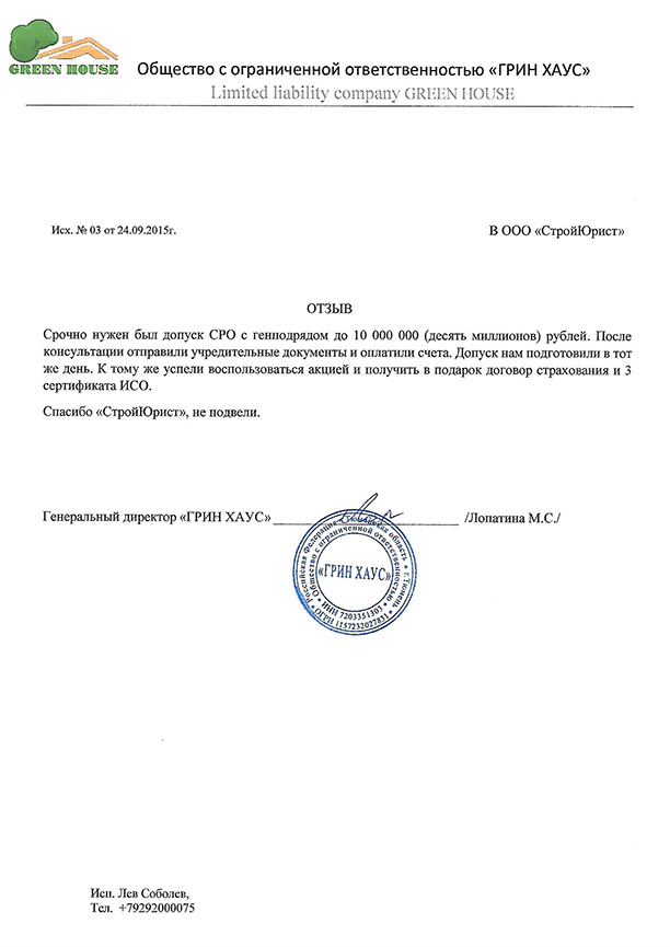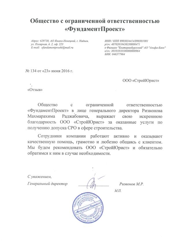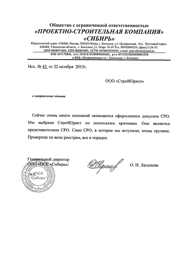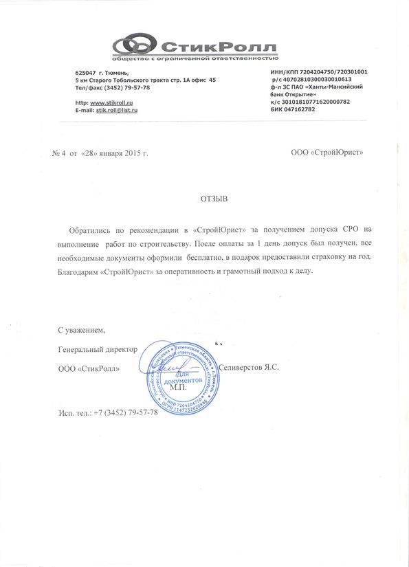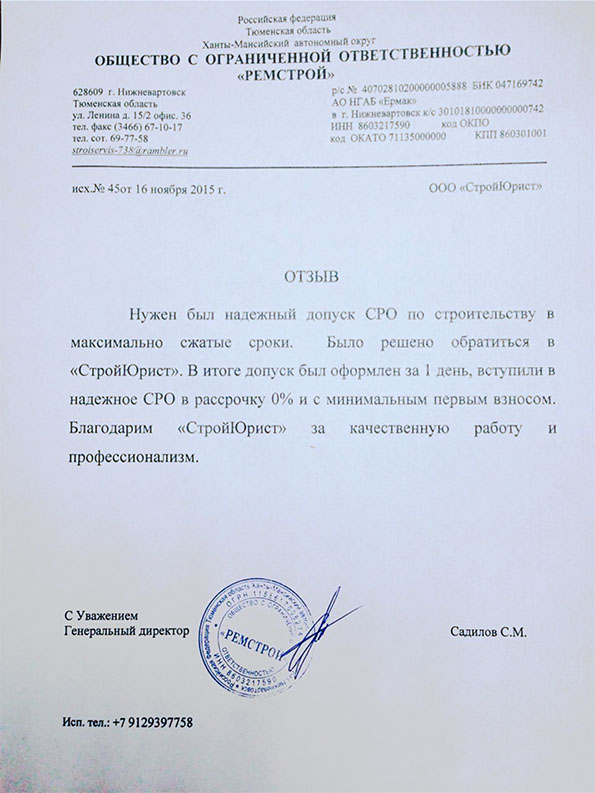 Отзывы клиентов "СтройЮрист" по вступлению в СРО в Йошкар-Оле